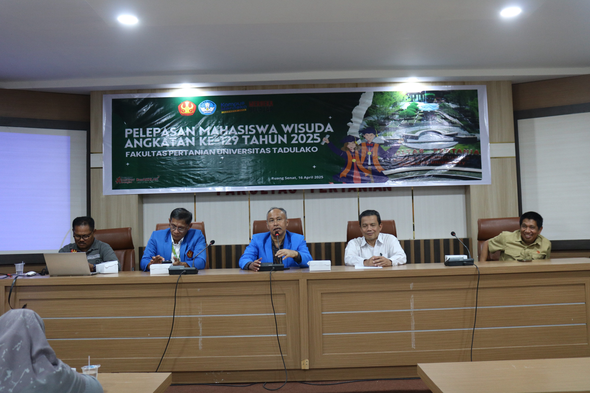 Senin, 15 April 2025 – Fakultas Pertanian dengan khidmat menyelenggarakan acara Pelepasan Mahasiswa Wisuda Angkatan 129 yang berlangsung di Ruang Senat Fakultas Pertanian. Kegiatan ini dibuka secara resmi oleh Dekan Fakultas Pertanian, didampingi oleh jajaran Wakil Dekan serta Koordinator Program Studi Agribisnis dan Agroteknologi.