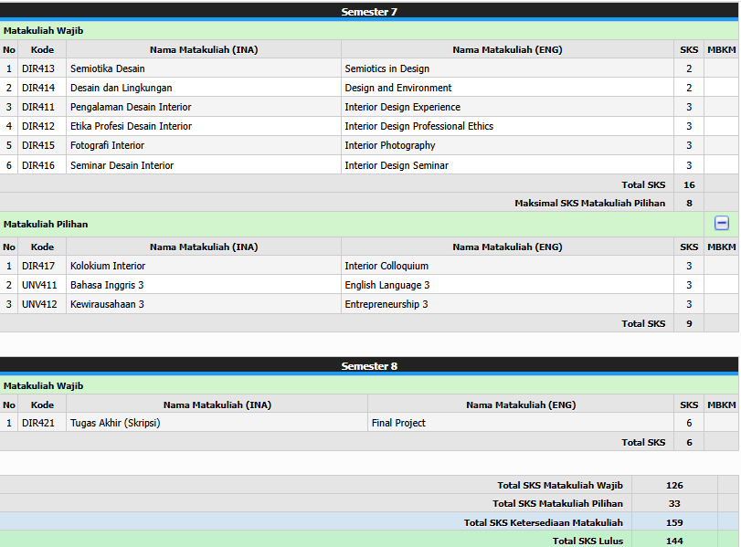 Mempunyai kemampuan untuk menerapkan pengetahuan dan ketrampilan ilmu Desain Interior pada umumnya, desain interior transportasi dan Desain Interior Lingkungan dan teknologi di bidang profesi Desain Interior.