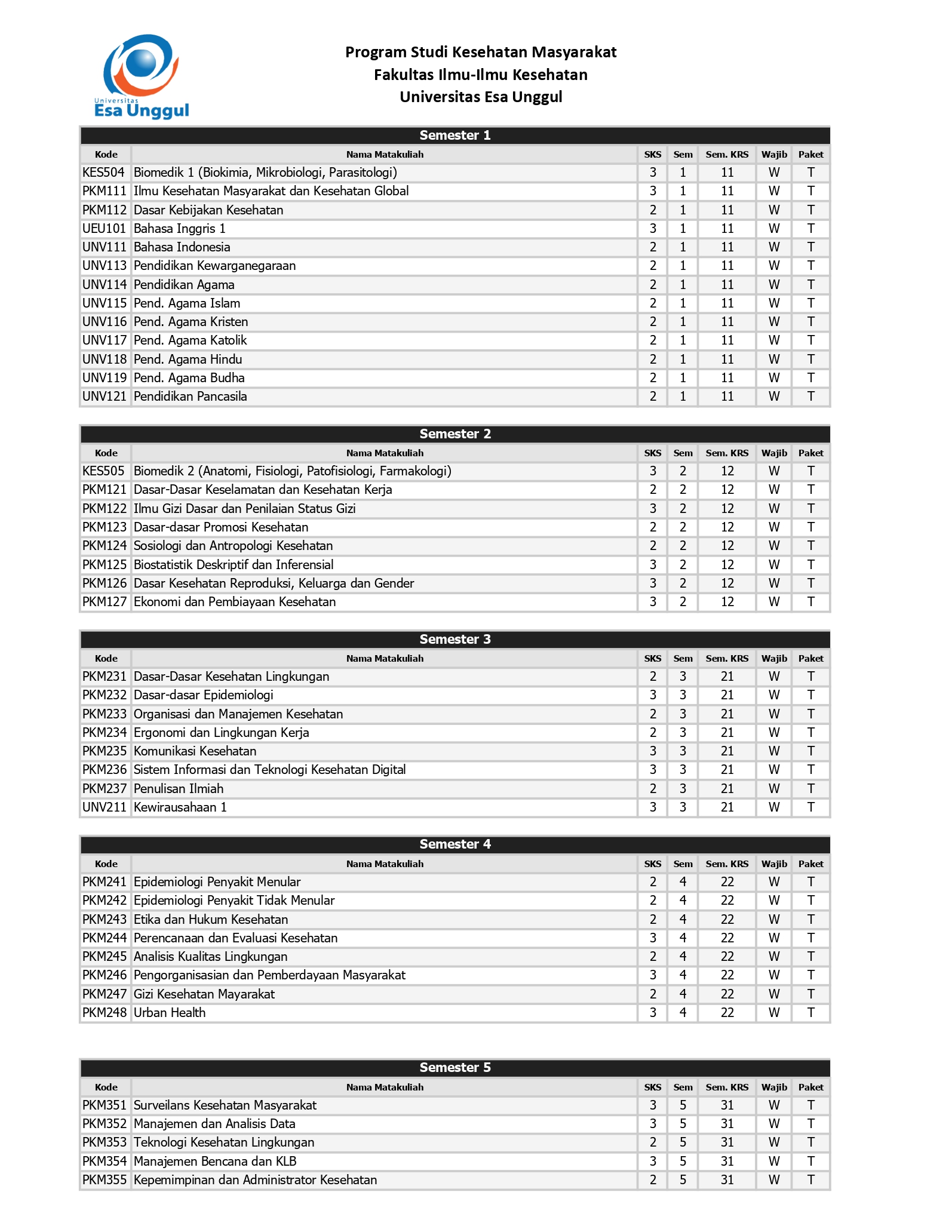 Seluruh lulusan Sarjana Kesehatan Masyarakat diharapkan memiliki kemampuan mengembangkan kurikulum pendidikan yang menghasilkan tenaga Kesmas sesuai dengan kompetensi baik di perguruan tinggi atau lembaga pendidikan lainnya sebagai tenaga akademik (dosen dan staff perguruan tinggi) dan melanjutkan pendidikan hingga level tertinggi dalam dunia akademik.