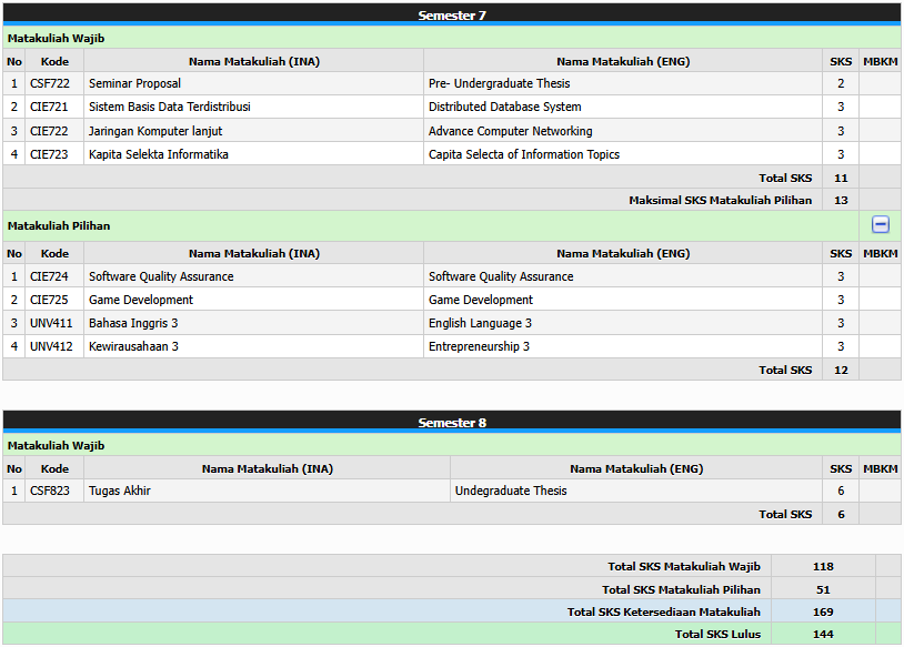 Computer Applied Technology: 166 Software Microsoft Corp., Macromedia, Multimedia Design, Networking CISCO, JAVA Programming, Database System (SQL Server), dan Artificial Intellegence, Software Application Program (SAP): Fundamental, Financial, Order Fulfillment, Manufacturing, Human Resources, Advanced Business Application Programming.