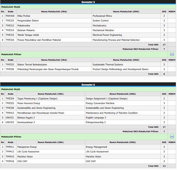 Bagi mereka yang mengambil peminatan konstruksi mesin setelah lulus diharapkan bisa membuat perencanaan mesin dan komponen-komponennya, serta bisa menganalisis cara kerja dan unjuk kerja dari suatu peralatan mesin. Disamping itu mereka juga diharapkan bisa menganalisis kekuatan dari komponen-komponen mesin serta bisa melakukan analisis stabilitas statis dan stabilitas dinamis dari suatu peralatan mesin. Peminatan ini mencakup pula bidang automasi industri, yang lulusannya diharapkan dapat merencanakan sistem automasi untuk mengendalikan mesin-mesin industri terutama yang berbasis pneumatika dan hidraulika yang murni maupun elektrik. Selain itu juga mahasiswa di harapkan juga mengerti tentang perkembangan teknologi AI dan robotic yang diterapkan pada mesin otomatis seperti PLC dan lain nya.